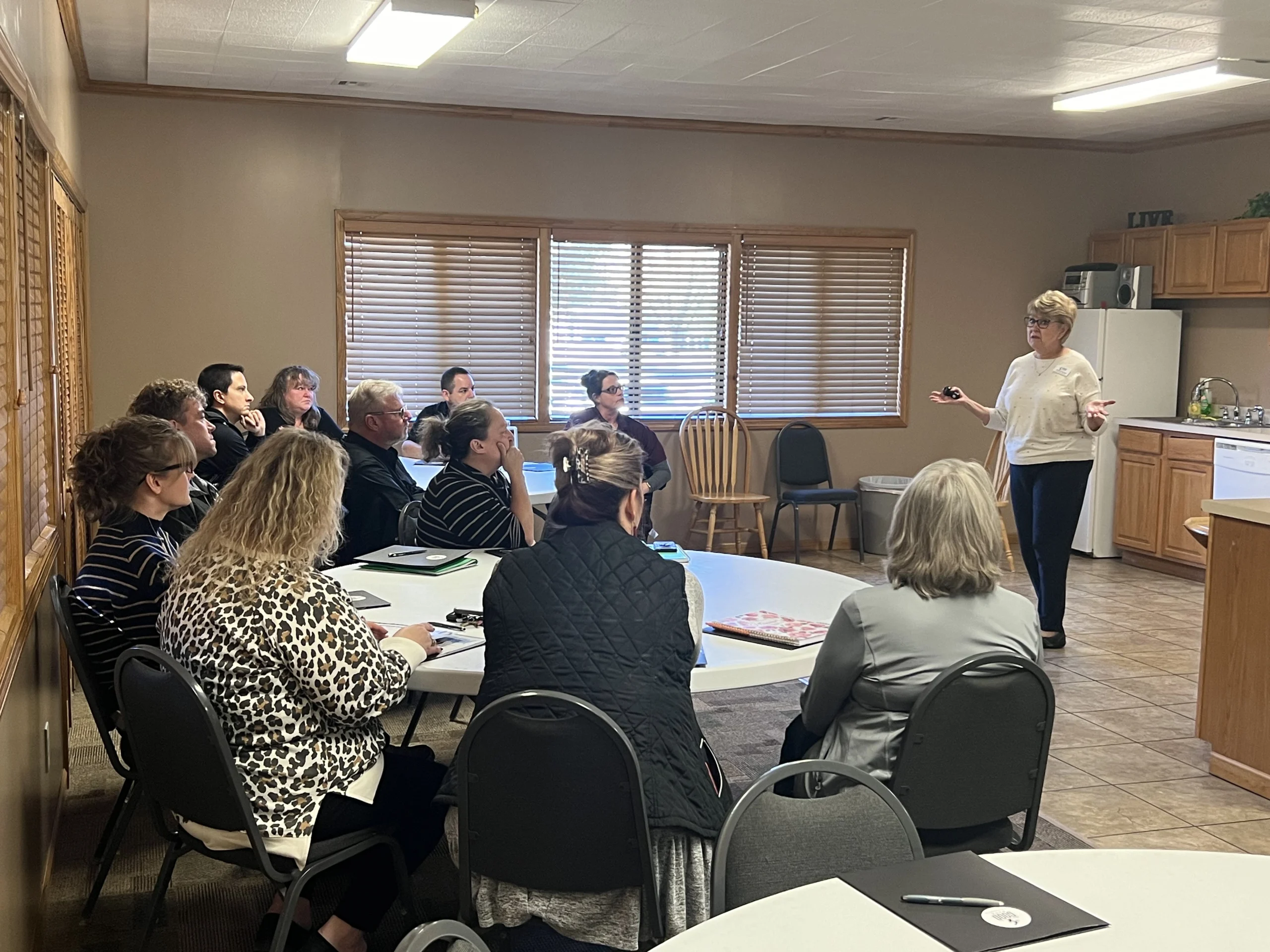 Good Dads Chillicothe leader and facilitator Cameron Schmitz stands at the front of a classroom to lead a Good Dads class