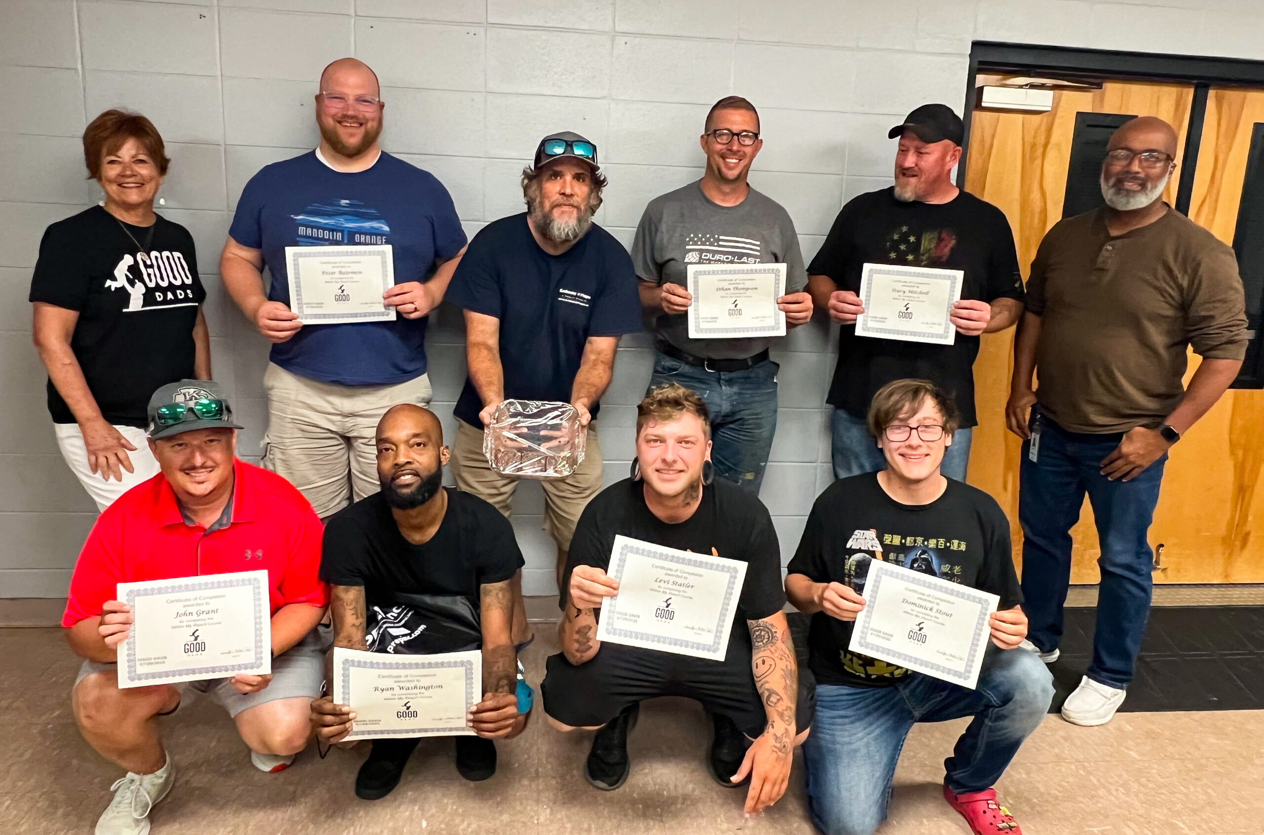 Each year, hundreds of fathers participate in the New Pathways for Good Dads program. We have a tradition of snapping a group photo on the last night of class—often a perfect opportunity for participants to show off their new Good Dads t-shirts! Below is a collection of some of our favorite class photos. Click on each to view a description.